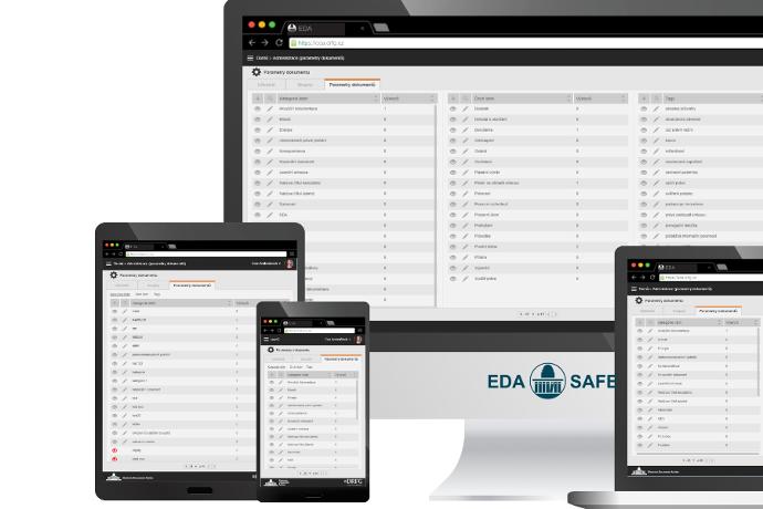 EDA Safe je aplikace, kterou jsme vyvinuli. Jedná se o elektronický digitální archiv vašich uzavřených smluvních dokumentů. Zadává, rozděluje a sleduje úkoly oprávněným uživatelům. Eviduje výpůjčky a umístění originálních dokumentů.